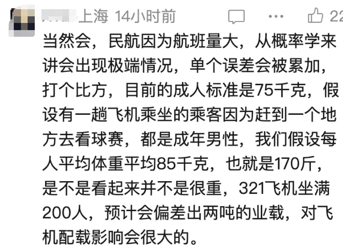 公开资料显示,中国民航局目前批准航空公司使用“标准平均重量”体系,成人旅客标准体重参考值为73公斤~75公斤。